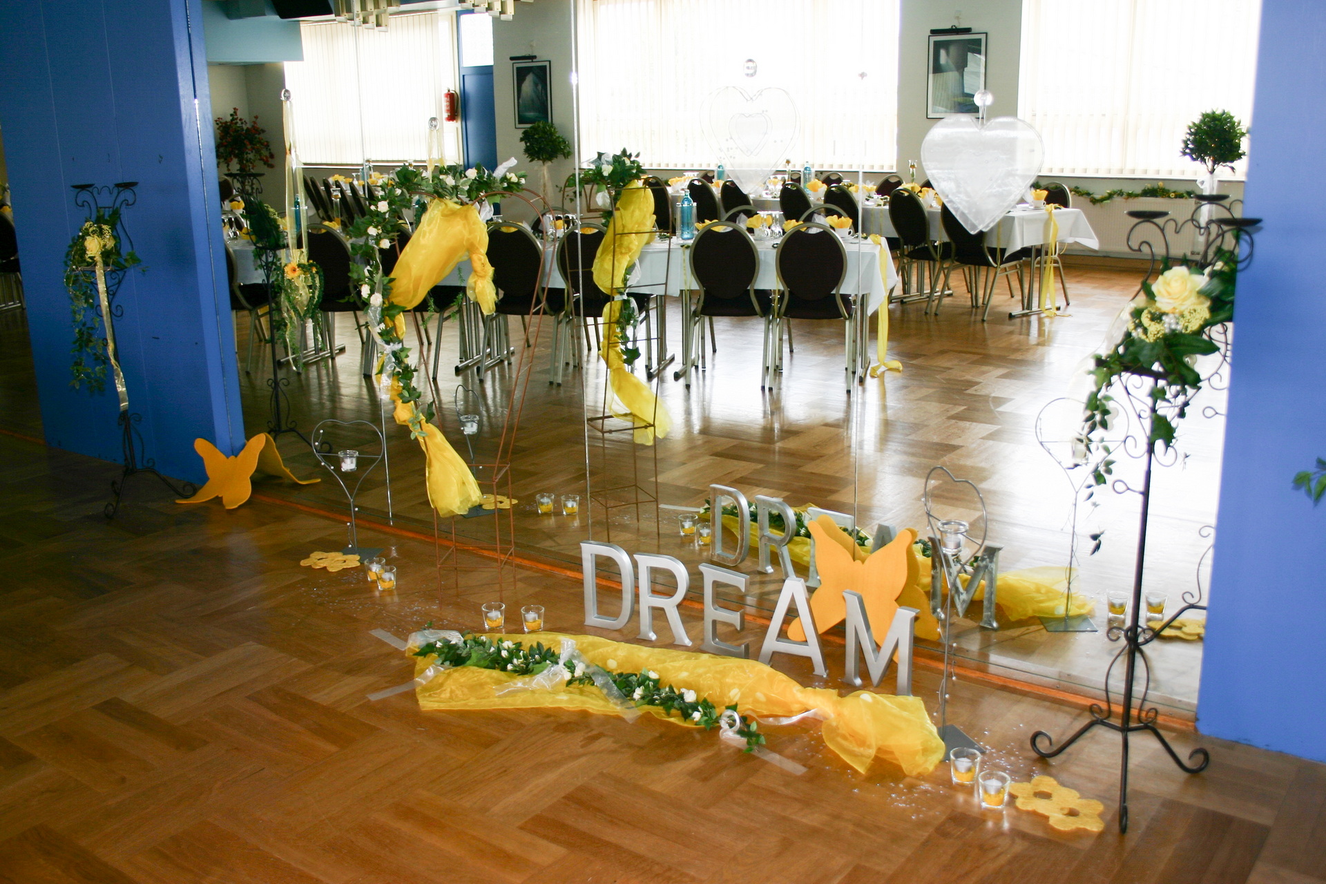 Für die individuelle Gestaltung Ihrer Dekoration steht Ihnen unser Partner, die Dekorateurin Frau Buhl, zur Verfügung. Sie vereinbaren einen Termin mit ihr und suchen sich Ihre Wunschdekoration direkt bei ihr aus. Es stehen sehr viele Gestaltungsmöglichkeiten zur Verfügung. Die Kosten für eine solche Dekoration rechnen Sie direkt mit Frau Buhl ab. Allerdings sollten Sie sich damit nicht all zu lange Zeit lassen. Sie ist sehr beliebt und viel gebucht.